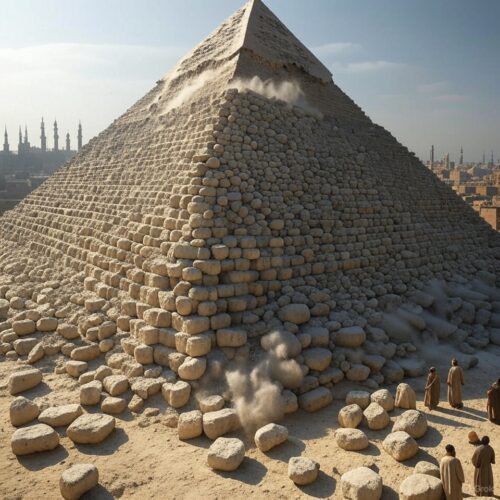 Further east, in Acre (modern Akko, Israel), under Crusader remnants and Mamluk control, the tsunami destroyed buildings and swept people into the depths. Damascus and Antioch felt the ground shake but escaped the waves, while Cyprus, Rhodes, and even distant Constantinople reported tremors. In Cairo, 500 km inland, the quake dislodged white limestone casing from the Great Pyramid of Giza, scattering blocks that locals later repurposed. Minarets on mosques toppled, and city walls cracked.