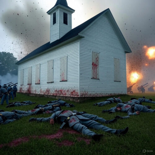 The fighting intensified. Hood’s men, roused from slumber in the West Woods, counterattacked ferociously. “Those damned red flags!” a Union soldier shouted, referring to the Confederate banners. The field changed hands 15 times in 90 minutes, with regiments like the Louisiana Tigers losing 323 of 500 men. By 9 a.m., as Hooker withdrew, the Cornfield was a tableau of horror: bodies twisted amid trampled corn, the air thick with powder smoke and the cries of the wounded. The Dunker Church, mere yards away, became a focal point, its white walls splattered with blood as artillery shells exploded nearby.