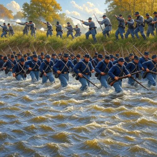 As the sun climbed higher, the afternoon’s drama unfolded on the southern end. Burnside’s IX Corps, delayed by morning fog and terrain, faced the stone bridge over Antietam Creek—guarded by just 500 Georgians under Robert Toombs on the heights above. Multiple assaults failed: the first at 10 a.m. saw men gunned down in the open; the second routed. Not until 1 p.m., after heroic charges by the 51st New York and 51st Pennsylvania—wading the creek upstream to flank—did they seize the bridge by 1 p.m., at the cost of 500 lives. Burnside’s men pressed up the hill toward Sharpsburg, threatening Lee’s escape route.
