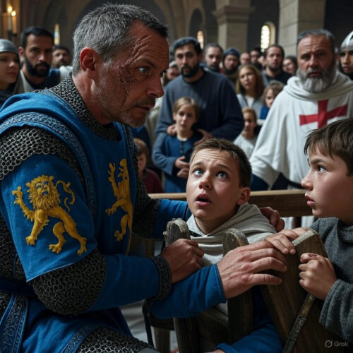 Refugees flooded the Holy City. Balian of Ibelin, a battle-hardened baron from the noble House of Ibelin, arrived on September 7 with a small escort. Saladin, honoring a safe-conduct, allowed him passage to fetch his family. But whispers from Patriarch Eraclius and the desperate populace changed everything. “Stay, my lord,” they pleaded, “for the love of God and His Holy Sepulchre.” Balian, a man of honor forged in the forges of Outremer, knighted sixty burgesses in the Church of the Holy Sepulchre—elevating merchants and masons to warriors overnight. He dubbed children as young as fourteen, their boyish faces stern under ill-fitting helms. The city’s 60,000 souls—swollen by exiles—braced for the storm.