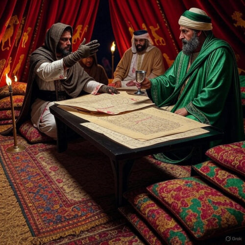 By September 29, the walls sagged like weary sentinels. Another breach yawned near the Corner Tower; Saladin’s belfries loomed, ready for the final push. Balian, his face gaunt under a week’s stubble, donned his finest surcoat and rode out under truce banner—a white cloth on a lance, fluttering like a dove from Noah’s ark. He met Saladin in a pavilion pitched midway, silk walls embroidered with lions and crescents.