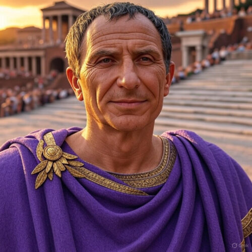 Fun aside: Caesar banned purple dye for non-royals (himself excepted), and his baldness? Laurel crowns covered it, birthing the “Caesar cut” joke.