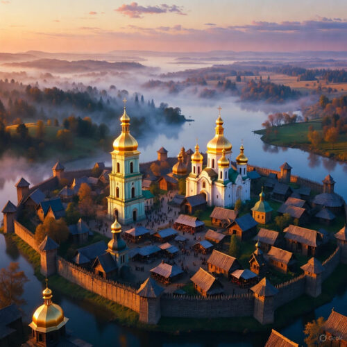 Under Vladimir the Great (r. 980–1015), Kyiv blossomed into a cultural colossus. A pagan polytheist at heart, Vladimir erected idols to thunder gods and fertility spirits along the Dnieper’s banks, but his gaze turned westward to the radiant domes of Hagia Sophia. In 988, after a scouting expedition of faiths (Islam’s prohibition on pork clashed with Rus’ love of swine, while Judaism’s dietary laws fared no better), he chose Orthodox Christianity. The mass baptism in the Dnieper – thousands plunging into its icy waters under threat of the sword – bound Rus’ to Byzantium, infusing it with a faith that would outlast empires. Monasteries sprouted like mushrooms after rain, their scriptoria alive with the scratch of quills on vellum. The *Primary Chronicle*, compiled around 1113 by monk Nestor in the Caves Monastery, became the bedrock of Rus’ identity, blending myth, genealogy, and moral tales into a narrative as gripping as any saga.