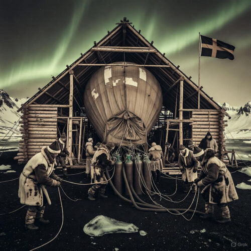 Fun fact to lighten the load: Andrée’s team practiced “balloon yoga”—contortions to shift weight mid-flight, preventing spins. Strindberg, ever the artist, sketched caricatures of the crew as polar bears, mailing them to his fiancée, Anna, with notes like, “If I freeze, at least I’ll have sketched the aurora.” By late 1896, Dane’s Island buzzed with carpenters hammering the launch platform, a 30-foot tower amid reindeer moss and permafrost.
