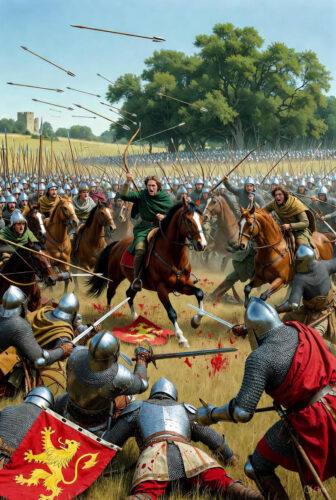As dawn broke, English scouts reported Welsh disarray. Mortimer’s cavalry—perhaps 800 lancers—thundered across the bridge in a desperate charge, hooves pounding like war drums. Llywelyn’s spearmen, caught reforming, panicked. The bridge held, but the Welsh line buckled; archers loosed volleys that felled horses but not the tide. Chaos erupted: men-at-arms hacked through the melee, Welsh fleeing into the woods, their cries swallowed by the river’s roar.