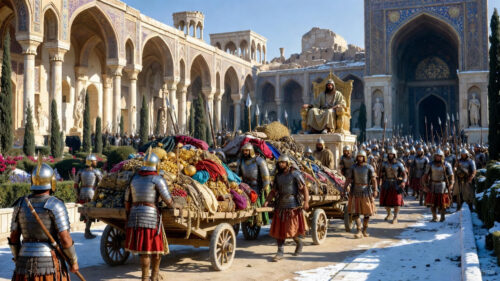 The Battle of Nineveh’s immediate aftermath was a Byzantine rampage. Heraclius’ army advanced unopposed, plundering Dastagird—Khosrow II’s opulent palace complex—seizing gold, silks, spices, and 300 recaptured Roman standards. The emperor wintered there, his troops feasting on Persian luxuries while Khosrow fled to the mountains of Susiana, desperately trying to rally defenses for Ctesiphon.