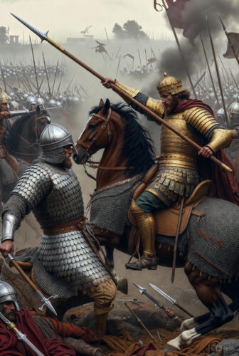 The stage was set on a foggy plain west of the Great Zab, possibly near Karamlays Creek. Fog neutralized the Persians’ archery advantage, favoring Byzantine close-quarters combat with lances and swords. Heraclius, at 52, led personally—a rarity for emperors—boosting his men’s spirits with speeches invoking divine favor. Rhahzadh, confident in his heavy cavalry (cataphracts), arrayed his forces in three dense divisions, aiming to overwhelm the Byzantines.