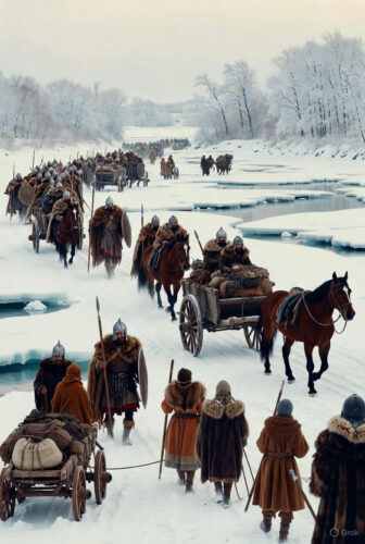 To grasp Tricamarum’s fury, we must rewind to the Vandals’ chaotic debut—a barbarian ballet that began not in Africa’s sun-scorched dunes, but amid the frozen mists of the Rhine River in 406 AD. These weren’t your garden-variety nomads; the Vandals were a confederation of Germanic tribes, a melting pot of Hasdingi warriors, Silingi farmers, and Alan horsemen, all forged in the crucible of Rome’s crumbling borders. Picture them: tall, fair-haired berserkers with braided beards and axes honed to a whisper, driven by famine and ambition across the frozen river into Gaul. Roman sentries, caught flat-footed by the ice, watched in horror as 80,000 souls—warriors, women, wagons—poured south like a human avalanche.