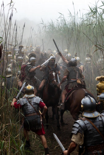 Cavalry engaged first: Roman wings, outnumbered 11,000 to 4,000, crumbled under Numidian feints and heavy charges. The victors pursued, leaving Roman infantry exposed. Elephants charged the flanks, trampling and terrifying, while slingers harassed. The Roman center pushed forward, breaking the Gallic line—many Gauls fought naked or lightly armored, fueled by war cries but buckling under Roman discipline. But as the Romans advanced, Mago's ambush sprang: emerging from the fog, they struck the Roman rear and left flank. Chaos ensued. Carthaginian cavalry wheeled back, hitting the rear. Roman flanks collapsed; velites were massacred by the river.