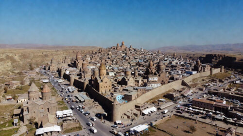 Dvin itself was a marvel, a city with roots stretching back millennia. Founded in the 4th century by King Khosrov III Kotak of the Arsacid dynasty, it was built on the ruins of even older settlements dating to the Bronze Age. Perched along the Metsamor River, 35 kilometers south of modern Yerevan, Dvin grew into a fortified stronghold and commercial hub. By the 5th century, it had become the capital of Sassanid Persia’s Armenian province after the fall of the Arsacid kingdom in 428. Persian marzpans (governors) ruled from its palaces, blending Zoroastrian influences with emerging Christian traditions. When the Arabs conquered in 640 during the reign of Byzantine Emperor Constans II, they renamed it Dabil and made it the administrative center of Arminiya, a vast province encompassing Armenia, Georgia, and Azerbaijan.