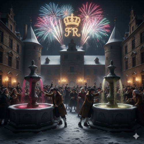 Frederick understood that a King must be loved (or at least appreciated) by his people. In the castle courtyard, the scene was even more chaotic and joyous. Two fountains had been constructed for the day. At a signal, they began to spout wine instead of water—one fountain flowing with red wine, the other with white. The citizens of Königsberg drank from the King’s bounty. Commemorative silver and gold medals, struck with the King’s profile and the new royal title, were thrown by the handful from the castle balconies into the scrambling crowd below.