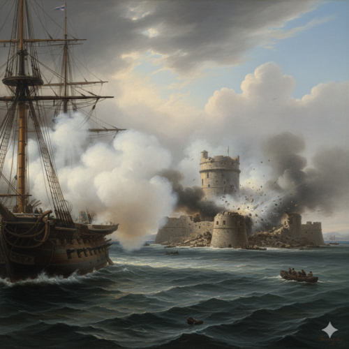 For nearly two hours, the bay was choked with sulfurous smoke. The British gunnery was relentless and disciplined. They systematically dismantled the defenses. The great tower on Sira Island, which had stood for centuries, crumbled under the weight of the barrage. The Arab return fire, initially spirited, began to slacken as their guns were dismounted and their gunners killed or driven into the rocks.