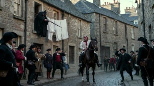 January 23 dawned cold and clear. Moray, riding horseback in a cavalcade of lords and guards, entered Linlithgow around noon. The street was lined with spectators, some hanging laundry to dry—a perfect camouflage. From the window, concealed behind hanging clothes, Bothwellhaugh took aim with a matchlock carbine, a short-barreled firearm loaded with a single lead ball. As Moray came into view, he fired. The shot struck Moray below the navel, piercing his spleen and intestines. Chaos erupted. Moray slumped from his horse, uttering, "I am slain," before being carried to the nearby palace. He lingered for 11 hours, dictating his will and consoling his aides, before dying around midnight at age 39.