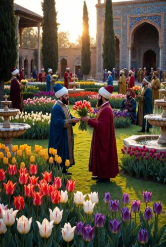 In the 16th century, the Ottoman Empire turned tulips into a cultural obsession. Sultan Suleiman the Magnificent and his successors bred thousands of varieties in the imperial gardens of Constantinople (modern Istanbul). The most prized were the ones with multicolored petals – vivid streaks of red on white, purple flames on yellow – created unknowingly by a virus transmitted by aphids. This "breaking" pattern made each bulb unique, like natural works of art. Ottoman nobles hosted lavish tulip festivals, and the flowers became emblems of wealth and refinement.