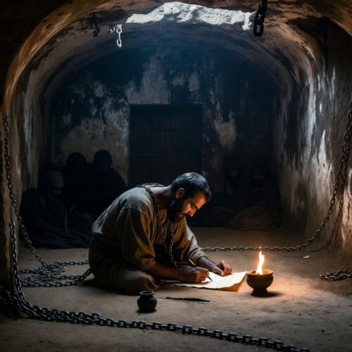 Now, let's crank up the drama: Enter the Great Persecution. In 303 AD, Diocletian's edicts hit Caesarea hard. Churches were razed, Bibles torched, and clergy arrested. Pamphilus, as a prominent presbyter, was a prime target. But did he flee? Nope. He continued teaching underground, smuggling scriptures, and even writing defenses of Christianity. In 307 AD, under Governor Urbanus, Pamphilus was arrested and thrown into prison. There, in the dank cells of Caesarea's dungeon, he didn't waste away—he wrote. With fellow prisoners like the deacon Valens and the scholar Porphyrius, Pamphilus composed an *Apology for Origen*, a five-book defense of his hero's theology. Eusebius later added a sixth book after Pamphilus's death. It's like they turned their prison into a think tank, proving that even chains couldn't bind the human spirit (or a good argument).