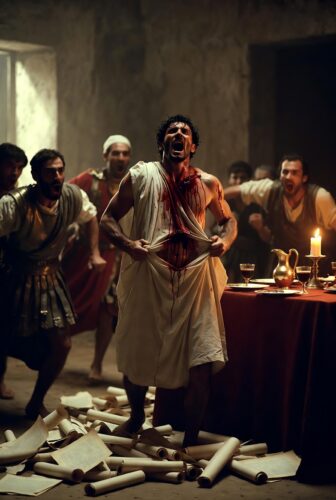 Victory was total, but the human cost lingered in the aftermath. Scipio fled by sea, only to be intercepted; he fell on his sword rather than face capture. Labienus escaped to Spain for one last stand at Munda the next year. Afranius and others were hunted down and executed by Caesar’s ally Publius Sittius. Juba and Petreius, cornered in Numidia, staged a grim final dinner and duel: Juba killed Petreius, then ordered a slave to finish him off—honorable suicide, Roman-style. But the most iconic exit belonged to Cato the Younger at Utica. Hearing of Thapsus, Cato—stoic philosopher, relentless anti-Caesar voice, and symbol of Republican purity—hosted a final banquet, read Plato’s *Phaedo* (on the immortality of the soul), argued philosophy late into the night, then stabbed himself in the belly. Servants sewed the wound; Cato ripped it open again, spilling his guts in a grotesque, defiant act. Caesar reportedly lamented, “Cato, I grudge you your death, as you grudged me the honor of sparing your life.” It was the ultimate middle finger to clemency and the new order.