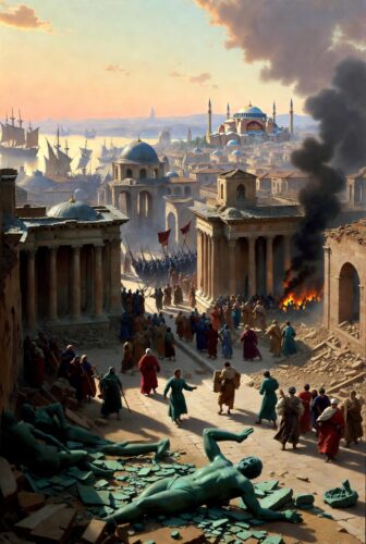 This wasn’t some footnote skirmish. It was the Sack of Constantinople—the moment the Fourth Crusade went full pirate mode and changed the course of world history forever. For three blood-soaked days starting April 13, 1204, an army of about 20,000 Western Europeans (mostly French knights and Venetian sailors) turned the “Queen of Cities” into their personal loot crate. They killed around 2,000 civilians, torched neighborhoods, shipped entire libraries of ancient Greek manuscripts and Roman bronzes back to Europe, and carved up the Byzantine Empire like a Thanksgiving turkey in a contract they signed weeks earlier. The result? The Byzantine Empire never fully recovered. The East-West Christian schism turned into a canyon. Venice became a superpower. And the road to the Ottoman conquest of 1453 got a whole lot shorter.