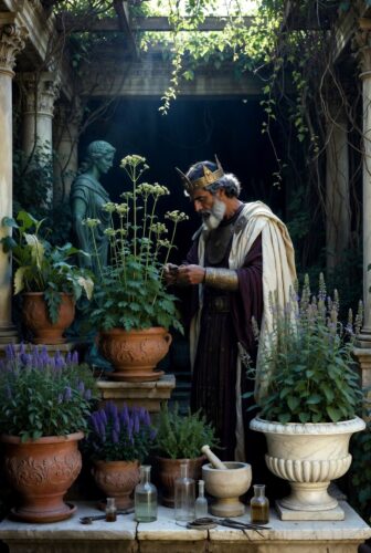 Identify three "poisonous" elements in your life (a bad habit, skill gap, or unused talent) and three beneficial ones. Spend 20 minutes daily "gardening": research/experiment with them weirdly (e.g., test a productivity poison like doom-scrolling by timing its effects, then brew an antidote routine). Journal one antidote insight per day. This mirrors Attalus's botanical labs—turn chaos into data.