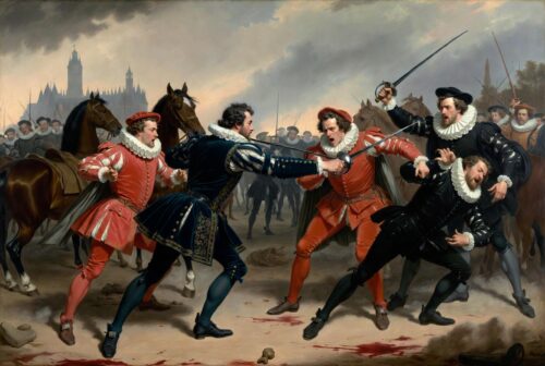 The aftermath rippled outward. Livarot survived but faded from court prominence. Dunes lived to fight another day in the endless Catholic leagues. Henry III grew more melancholic, more reliant on new favorites like Joyeuse and Épernon, whose later careers ended in assassination and exile respectively. The duel became instant legend—ballads, engravings, and moral tales circulated in Paris taverns. It even inspired later writers; echoes appear in Dumas-style swashbucklers. By the time the Edict of Nantes brought uneasy peace in 1598, the mignons were a cautionary footnote in the story of France’s bloody path to absolutism.